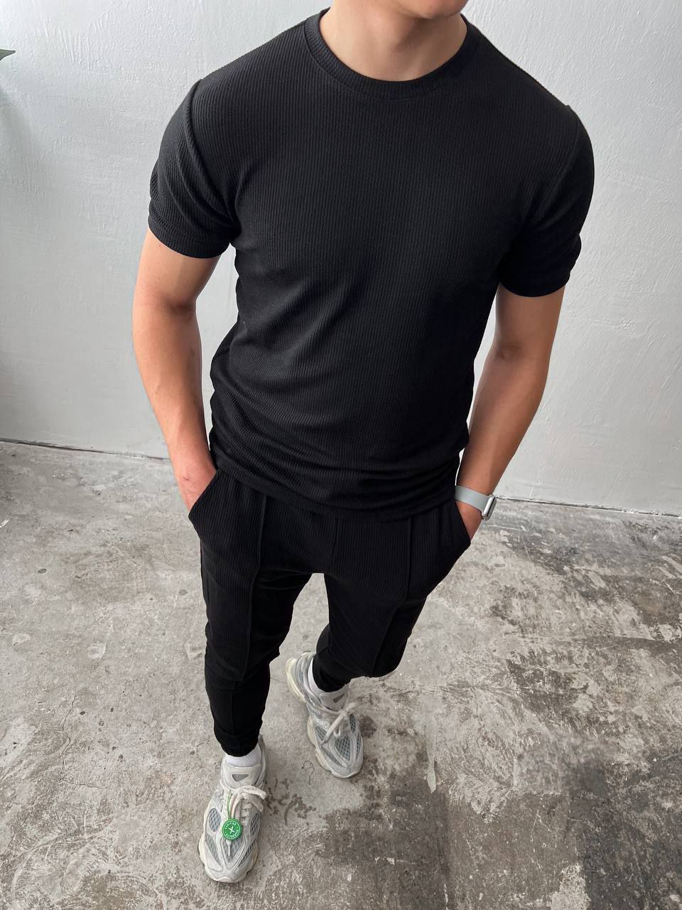 ✨Футболка с круглым вырезом и короткими рукавами.Брюки с эластичным поясом со шнурком, боковыми карманами и манжетами на резинке.