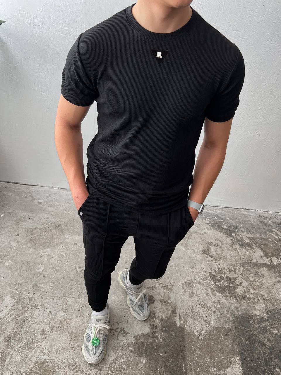 ✨Футболка с круглым вырезом, короткими рукавами и нашивкой на груди. Брюки с эластичным поясом, боковыми карманами и манжетами на резинке, дополнены нашивкой в шве кармана.