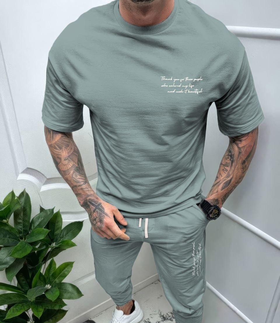 Будьте першим, хто залишив відгук “Костюм мужской (Футболка с принтом+брюки с шнурком) оливка”“