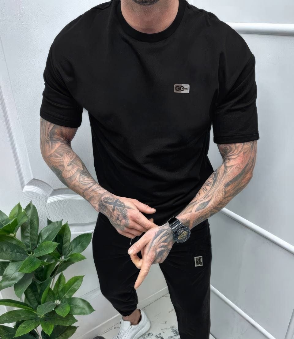 Костюм мужской Футболка с силиконовой нашивкой на груди+брюки черный