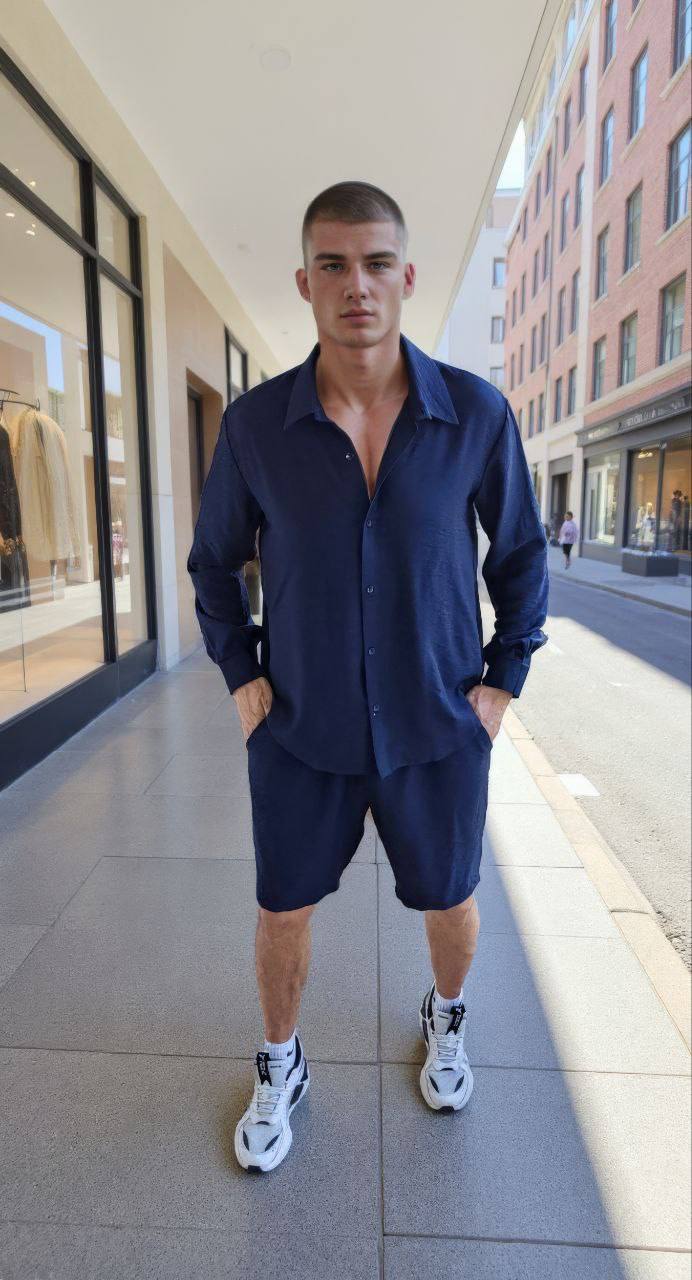 Будьте першим, хто залишив відгук “Костюм мужской: Рубашка прямого кроя с длинным рукавом+шорты на комфортной резинке синий”“