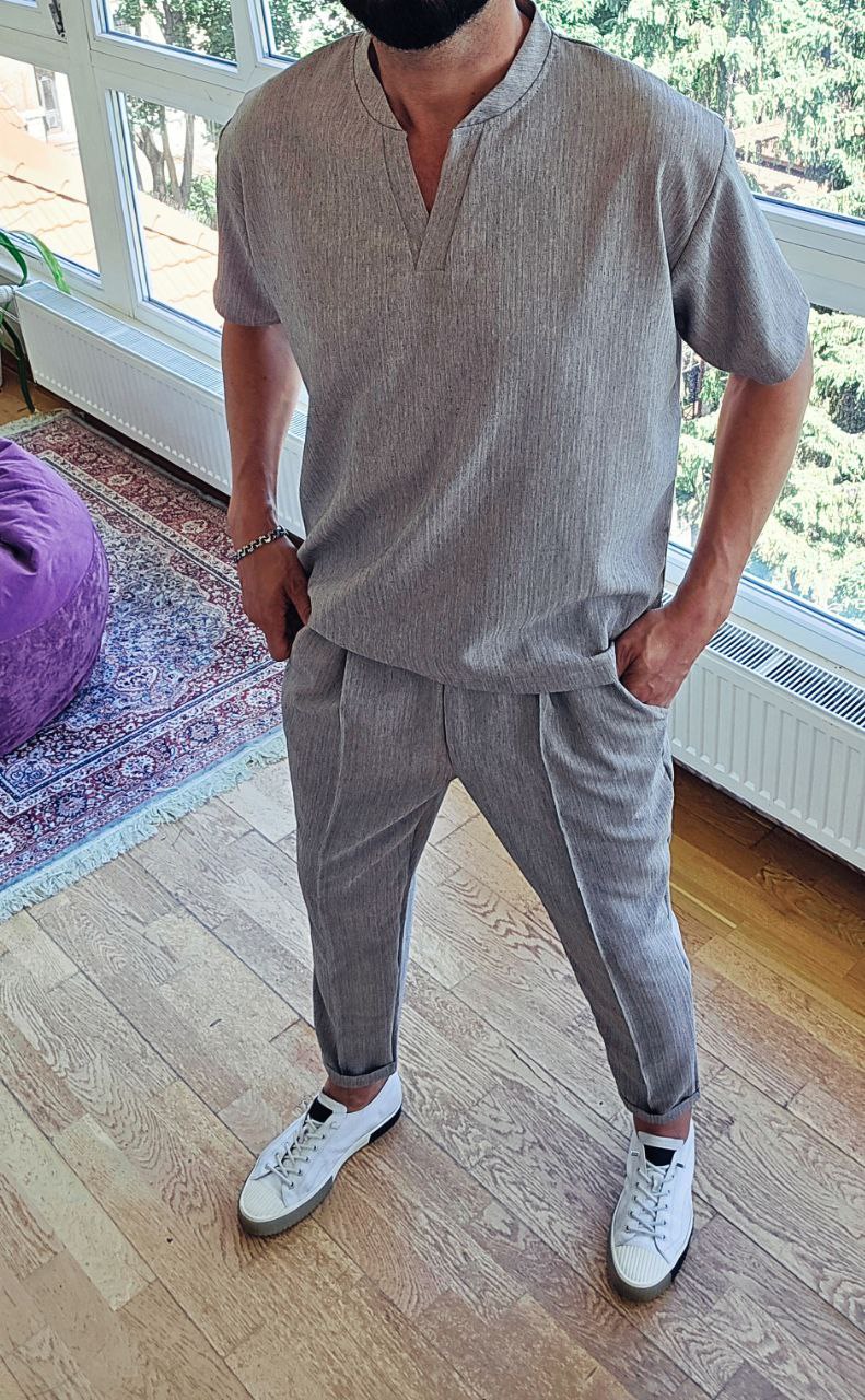 ✨Рубашка свободного кроя с V-образным вырезом и штаны на резинке со шнурком и карманами
