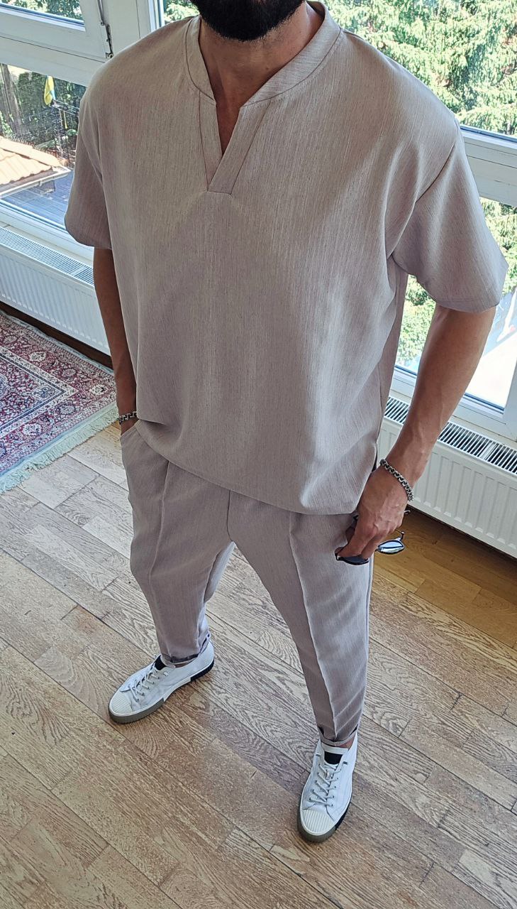 ✨Рубашка свободного кроя с V-образным вырезом и штаны на резинке со шнурком и карманами