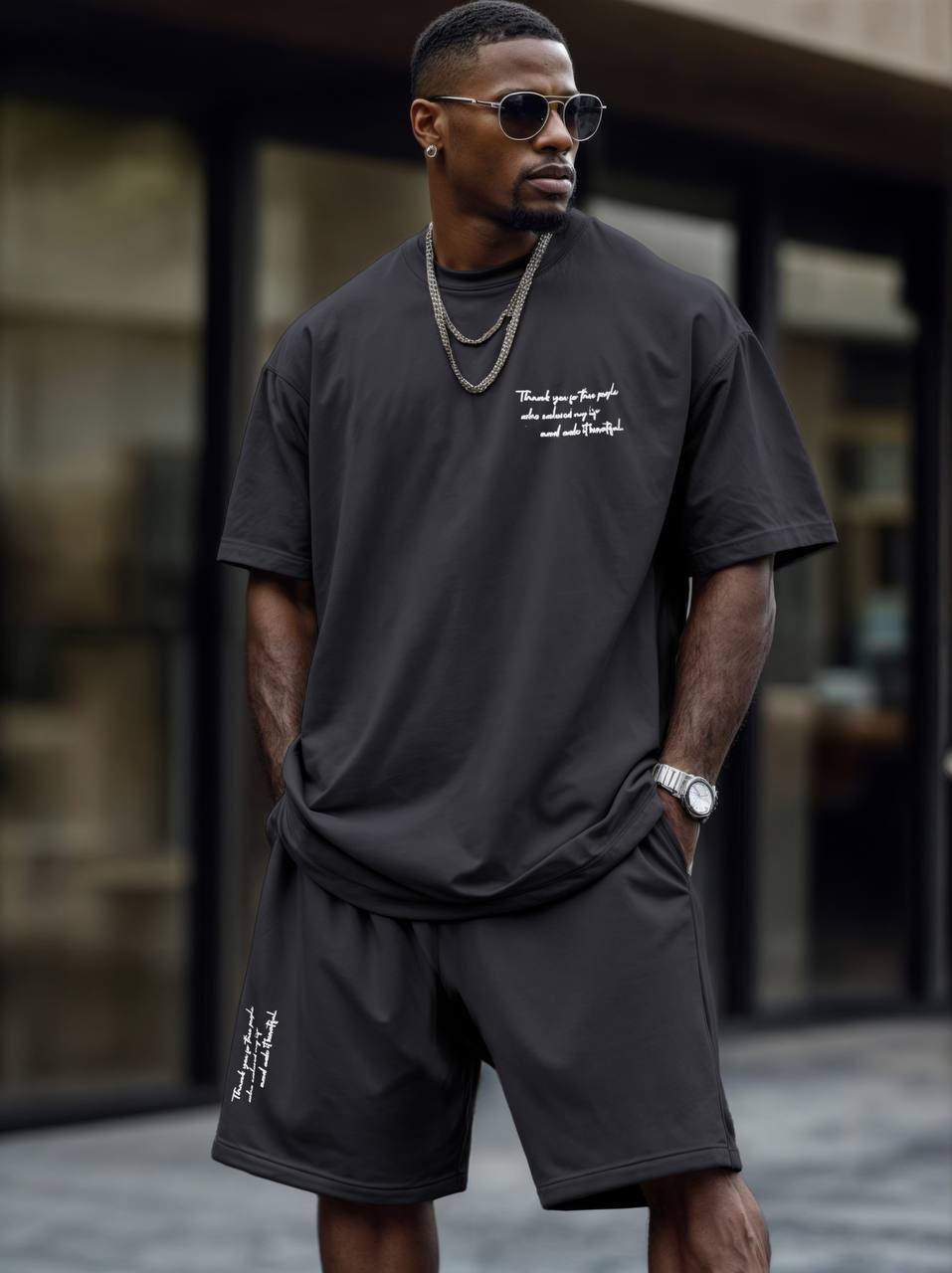Будьте першим, хто залишив відгук “Костюм мужской с наклейкой: Футболка свободного кроя+шорты на резинке графит”“