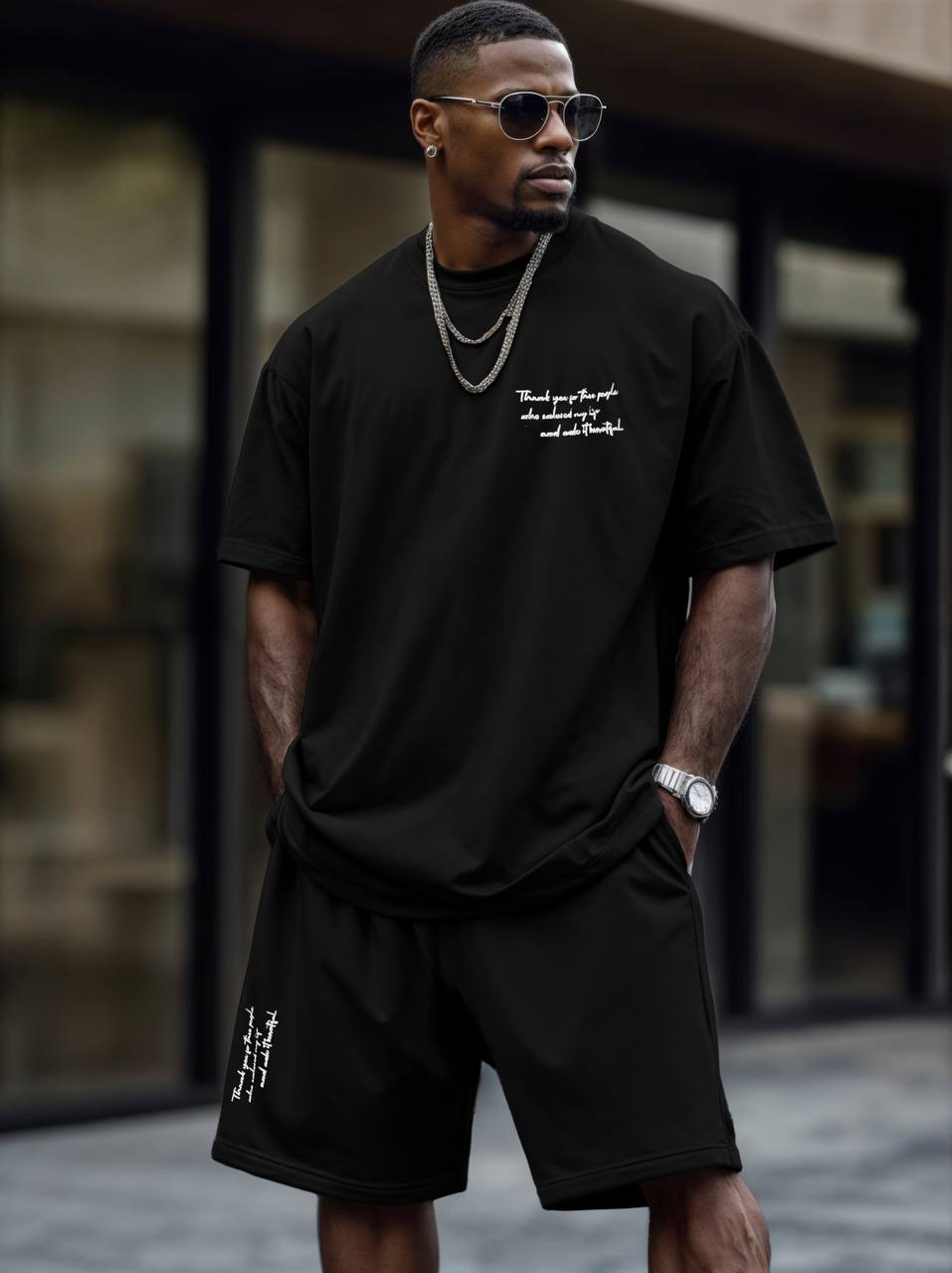 Будьте першим, хто залишив відгук “Костюм мужской с наклейкой: Футболка свободного кроя+шорты на резинке черный”“