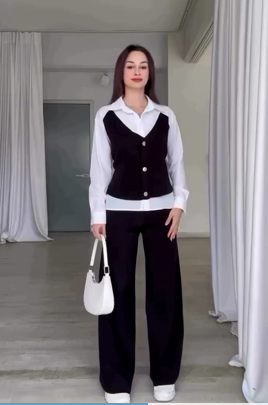 Головна » Магазин » Одяг » Жіночі костюми » Костюм оригинального кроя (рубашка+жилет два в одном+прямого кроя брюки) черный
