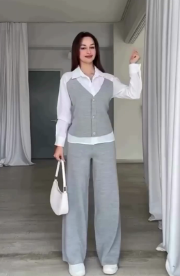 Головна » Магазин » Одяг » Жіночі костюми » Костюм оригинального кроя (рубашка+жилет два в одном+прямого кроя брюки) серый