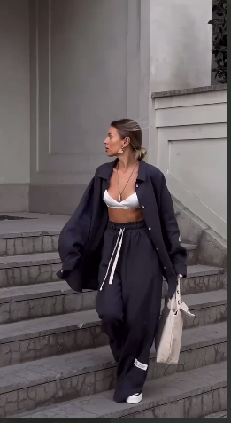 Костюм оверсайз (брюки+рубашка с длинным рукавом) темно-синий