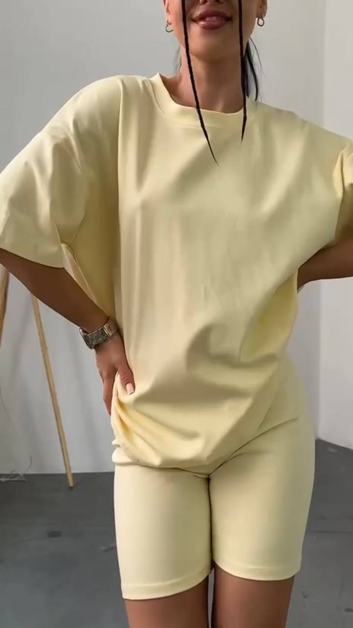 Головна » Магазин » Одяг » Жіночі костюми » Костюм оверсайз футболка и велосипедки (кулир) лимон