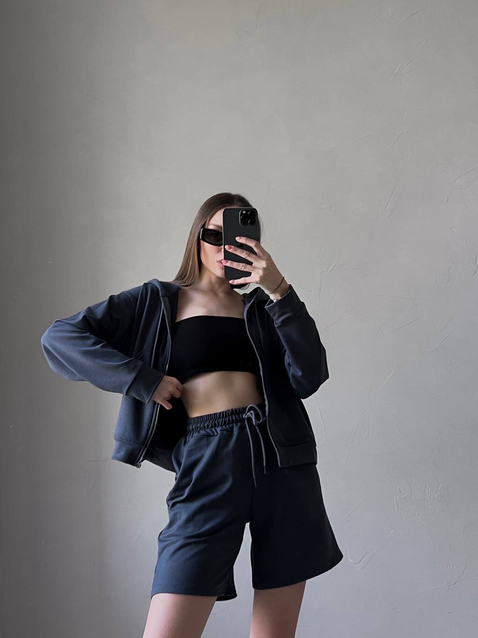 Костюм оверсайз (зип худи и шортики) двухнить графитовый