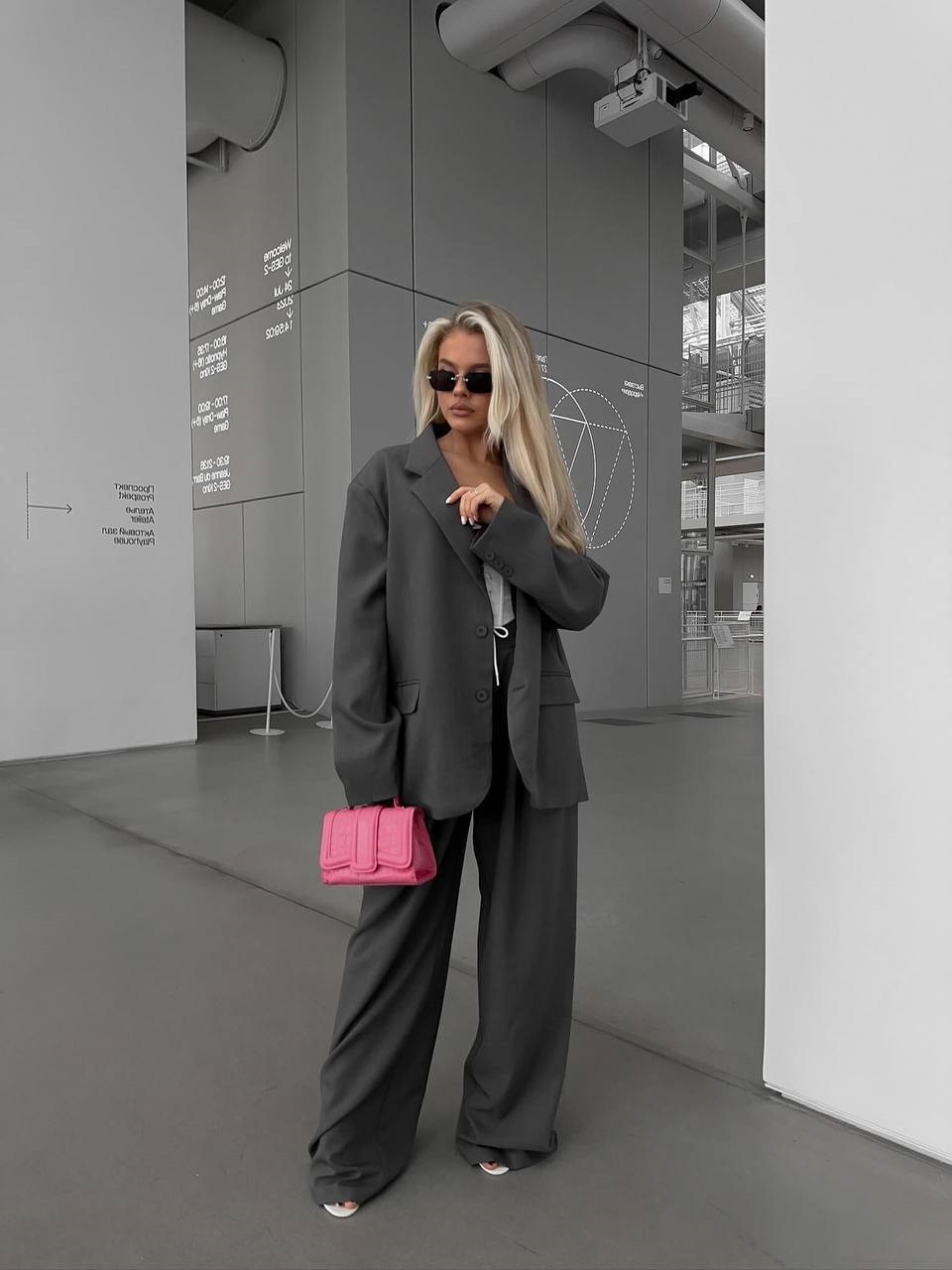 Головна » Магазин » Одяг » Жіночі костюми » Костюм пиджак и брюки оверсайз графит