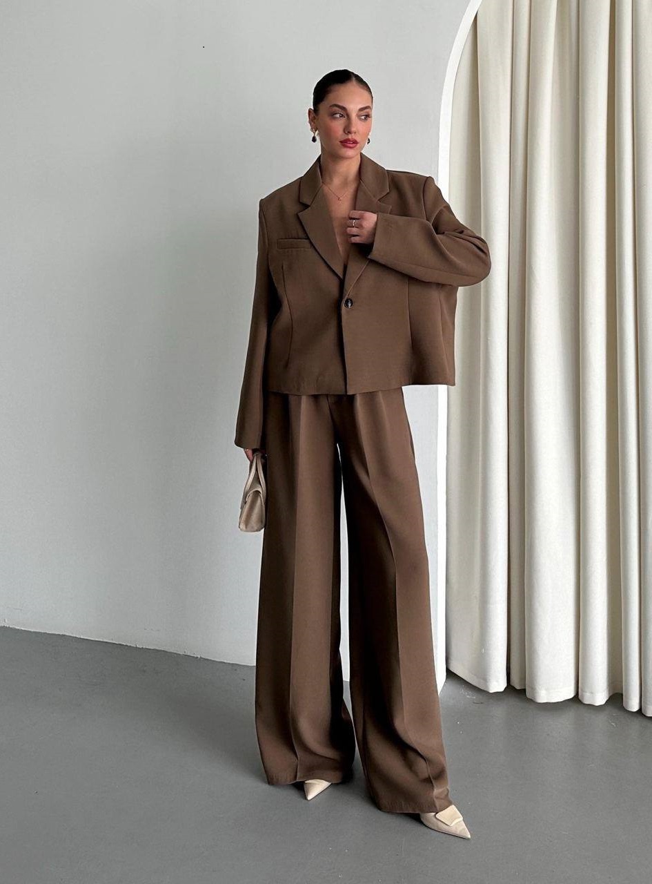Головна » Магазин » Одяг » Жіночі костюми » Костюм (пиджак оверсайз с английским воротником+свободного кроя брюки) шоколад