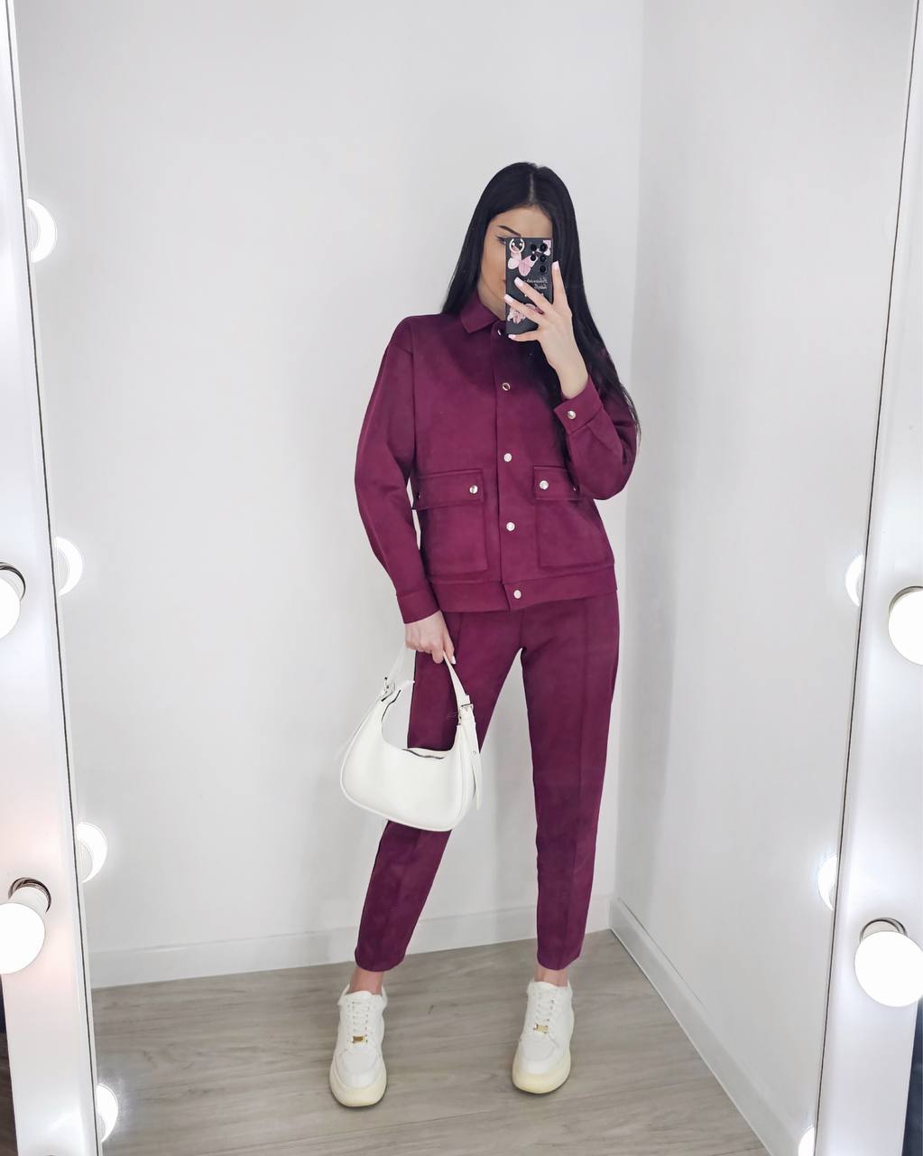 Костюм рубашка на кнопках с карманами+брюки (замша на дайвинге) марсала