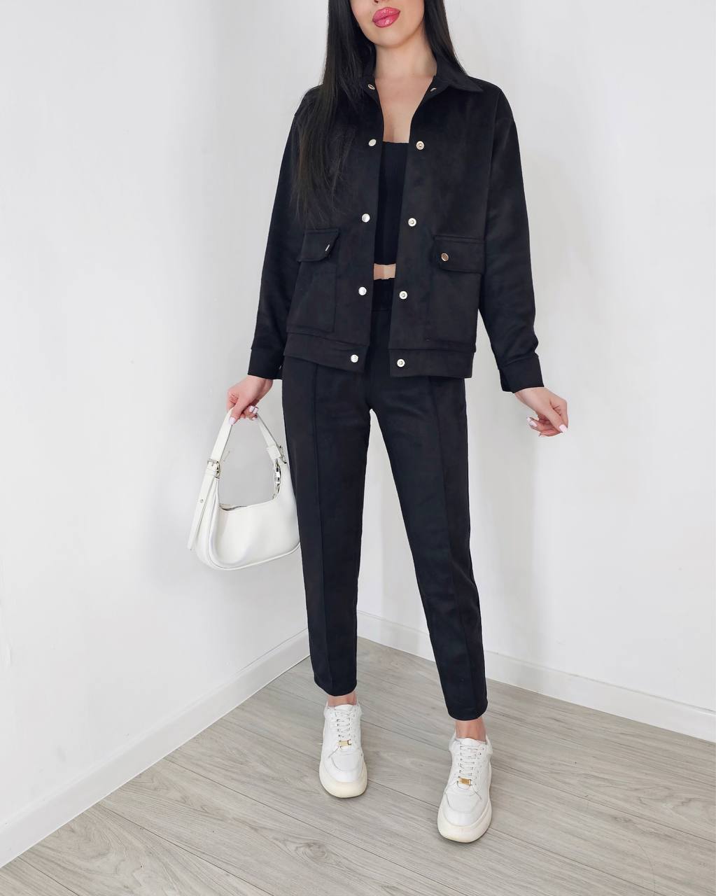 Костюм рубашка на кнопках с карманами+брюки (замша на дайвинге) черный