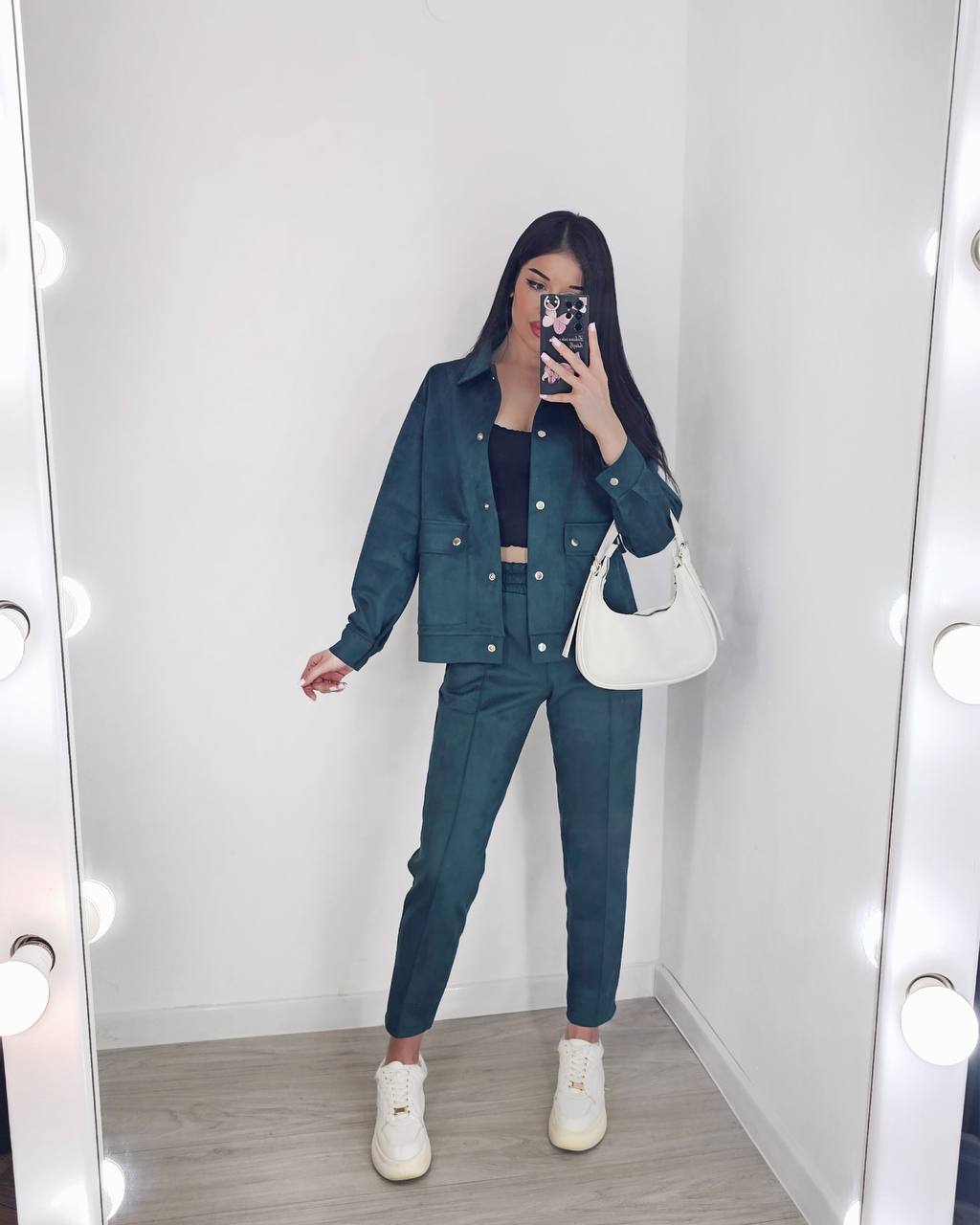 Костюм рубашка на кнопках с карманами+брюки (замша на дайвинге) бутылка