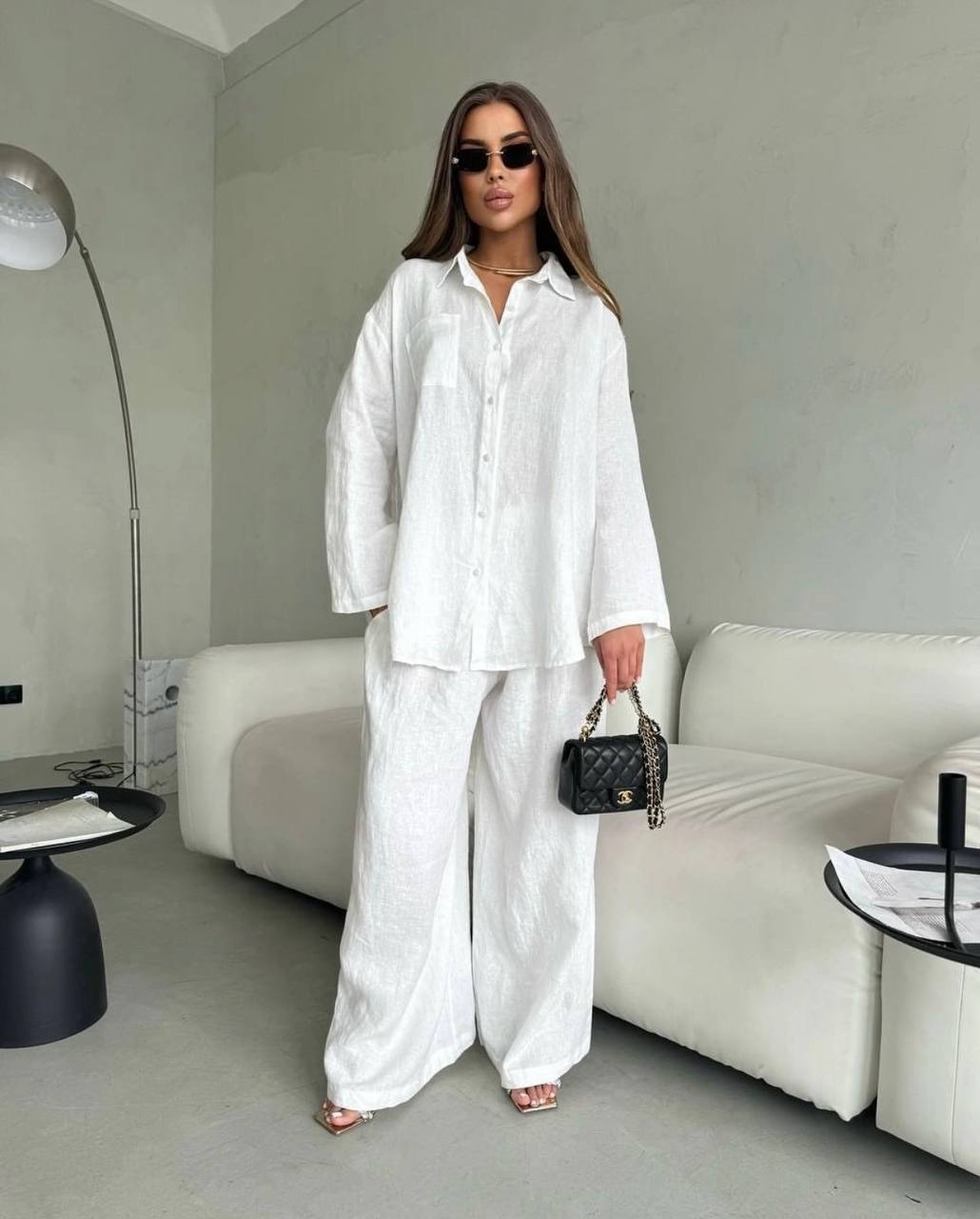Костюм: рубашка с длинным рукавом + брюки с боковыми карманами молоко