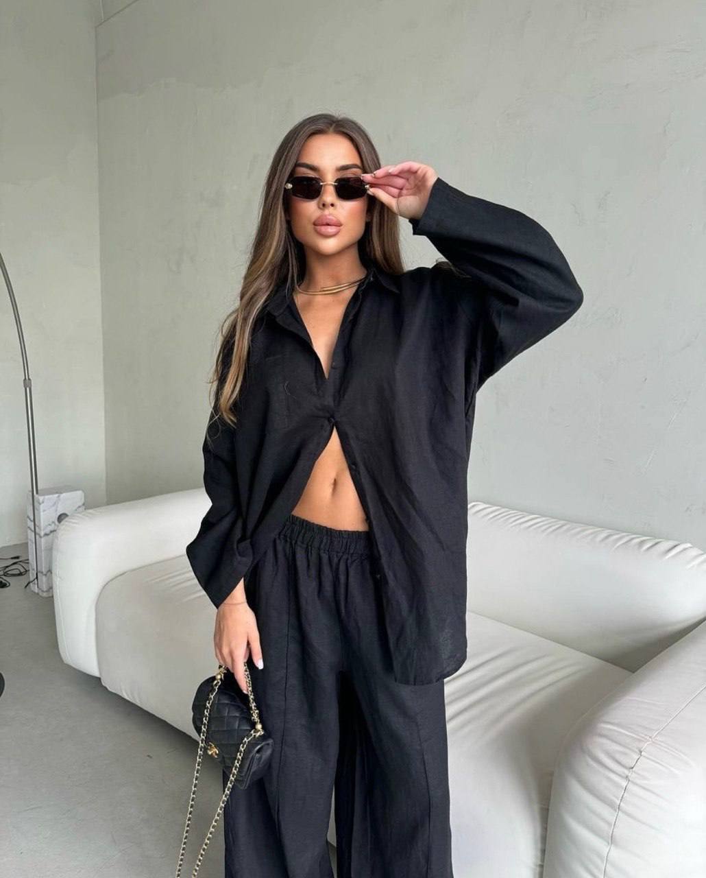 Костюм: рубашка с длинным рукавом + брюки с боковыми карманами черный