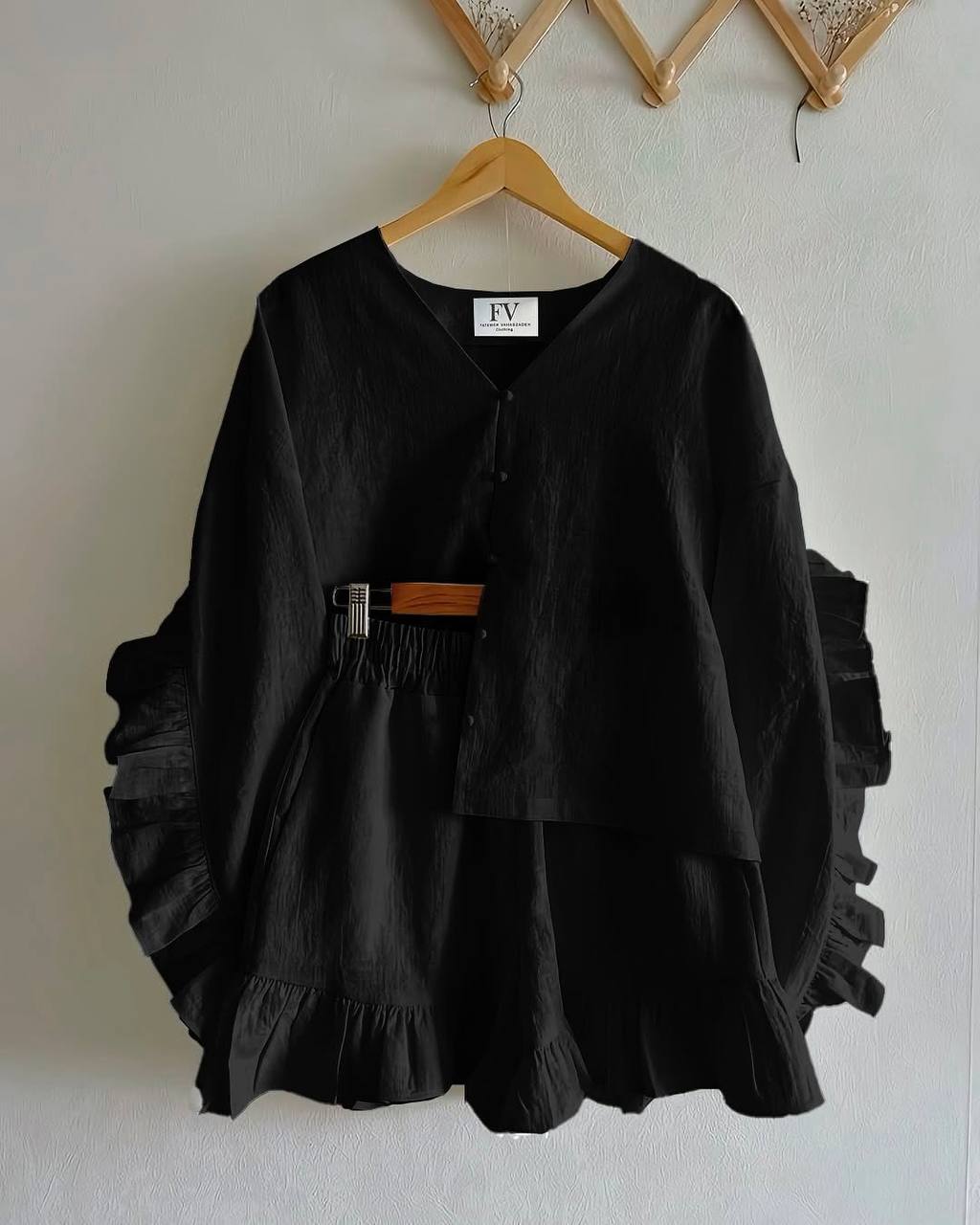 Костюм: рубашка + шорты высокая посадка черный