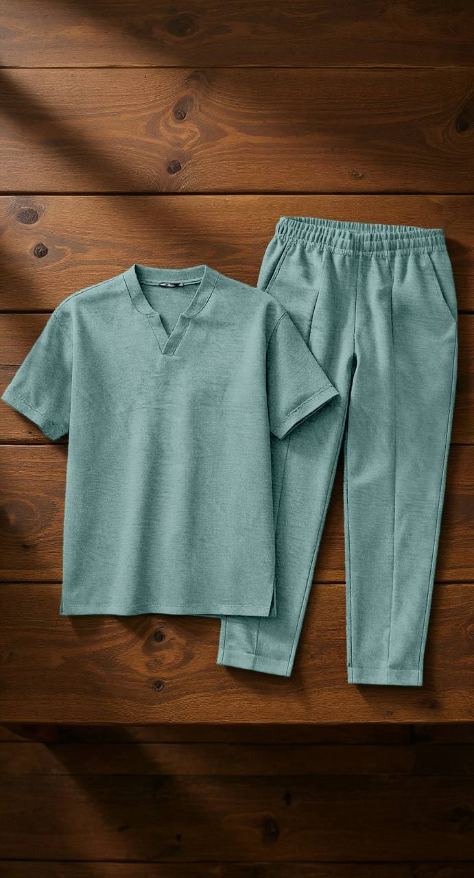 Будьте першим, хто залишив відгук “Костюм Рубашка свободного кроя с V-образным вырезом и брюки на резинке со шнурком оливка”“