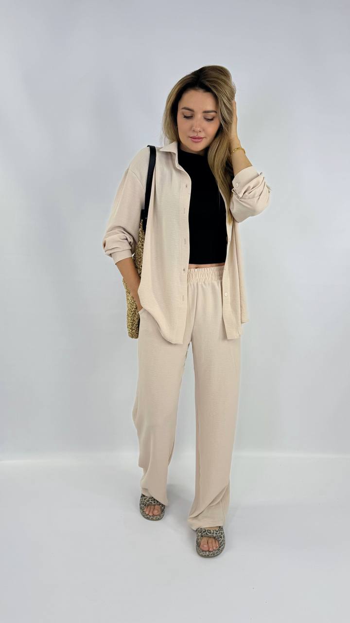 Костюм Рубашка свогодного кроя+Штаны (креп жатка) таш (светлый бежевий)