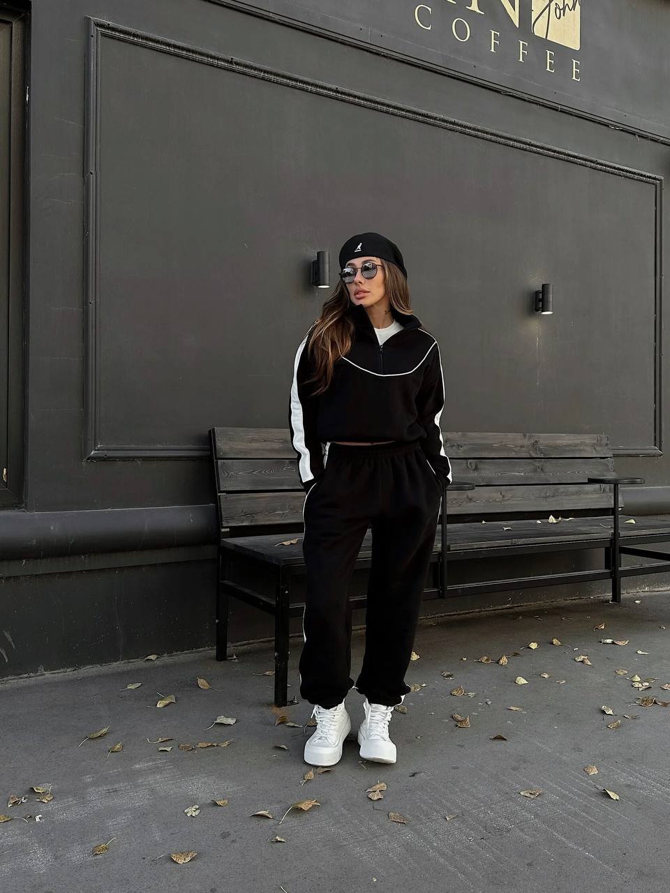 Костюм с контрастными лампасами (кофта воротник на молнии+брюки) черный