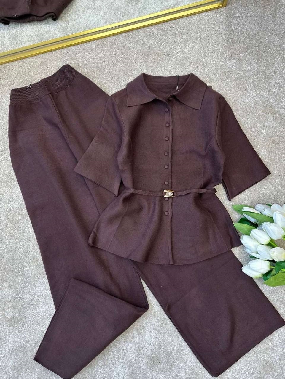 Головна » Магазин » Одяг » Жіночі костюми » Костюм с поясом: рубашка+брюки Ангора шоколад