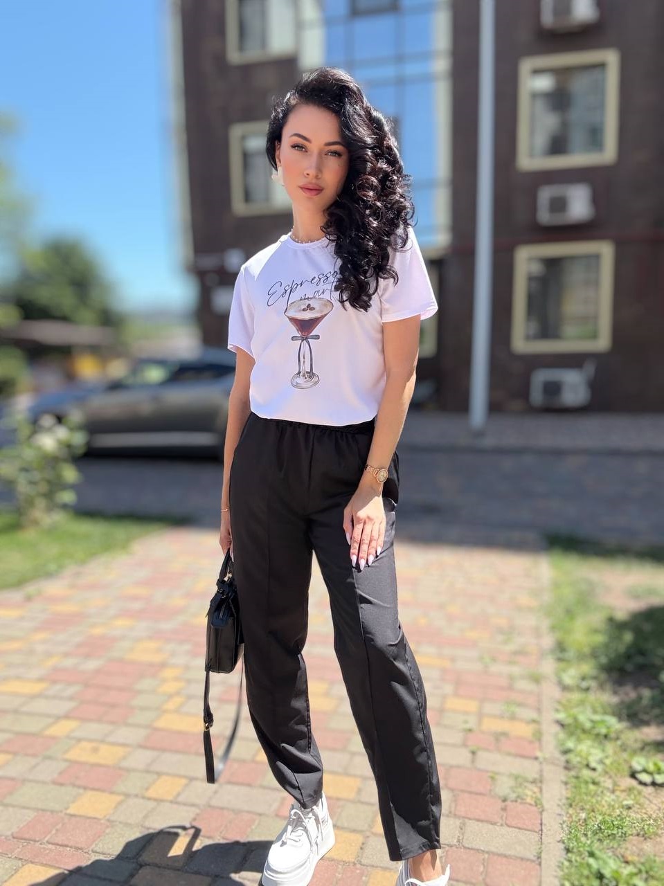 Головна » Магазин » Одяг » Жіночі костюми » Костюм (шелковистые брюки со стрелками+футболка с накатом) черный