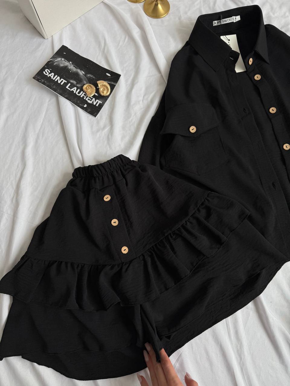 Костюм: шорты-юбка + рубашка (креп жатка) черный