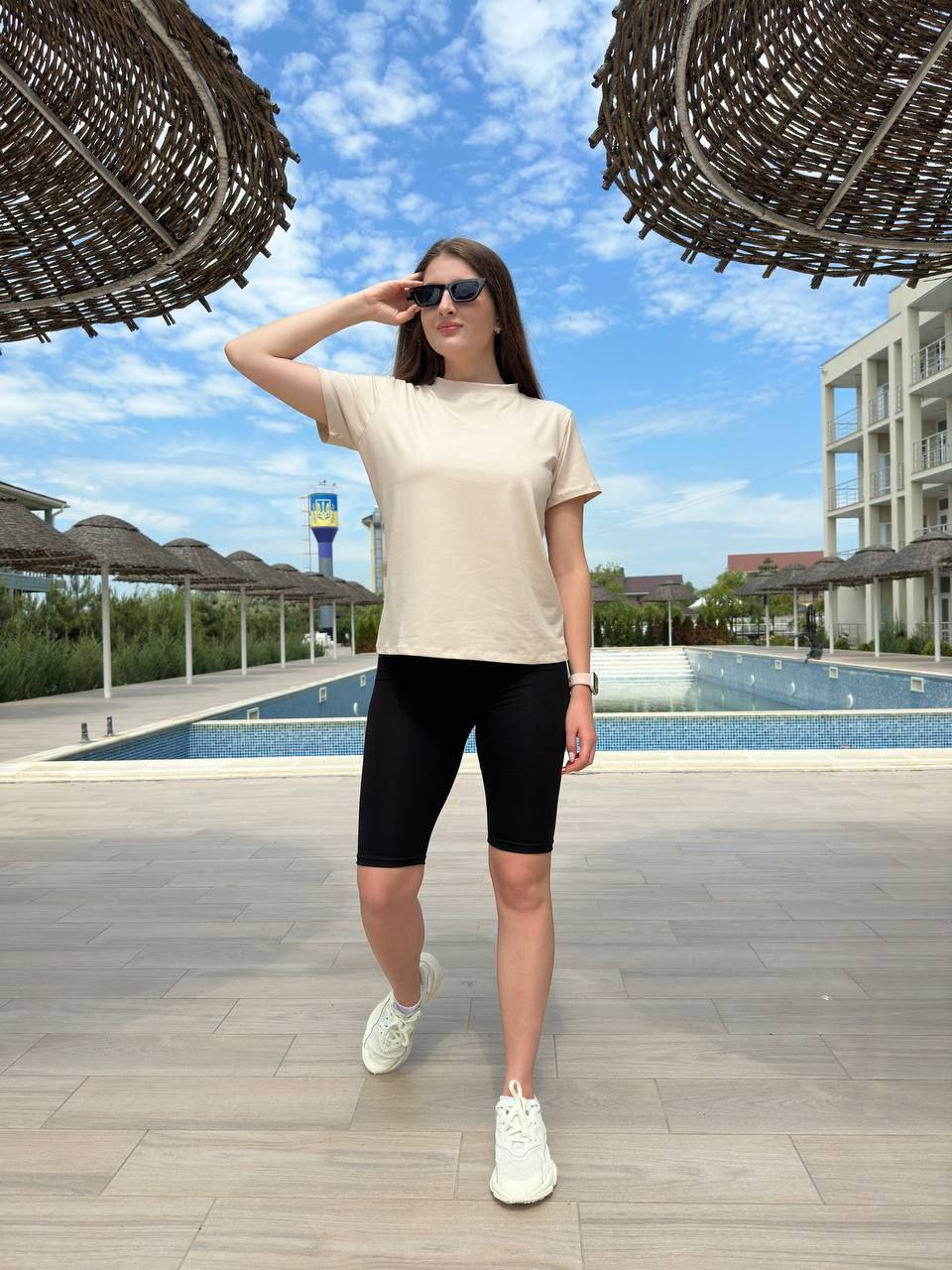 Костюм спорт футболка+велосипедки бежевый