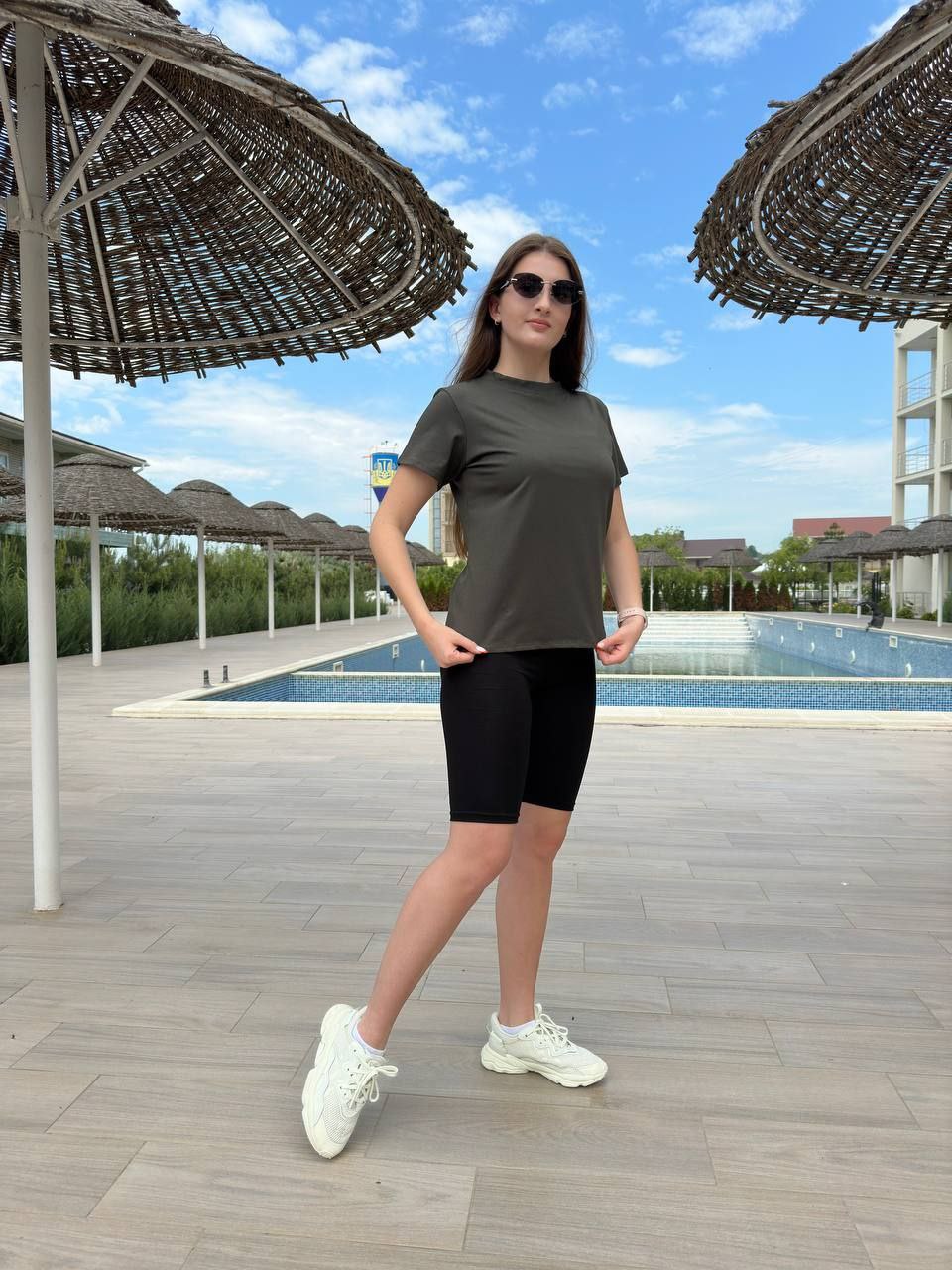 Костюм спорт футболка+велосипедки хаки