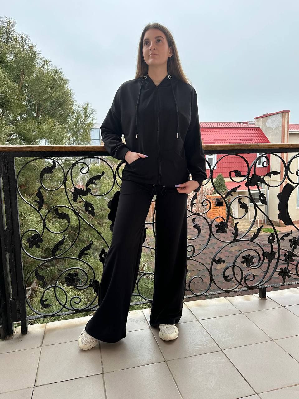 Костюм спортивный (кофта с капюшоном на молнии+свободные штаны) черный