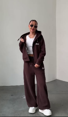 Головна » Магазин » Одяг » Жіночі спортивні костюми » Костюм свободного кроя (кофта на молнии+брюки) шоколад