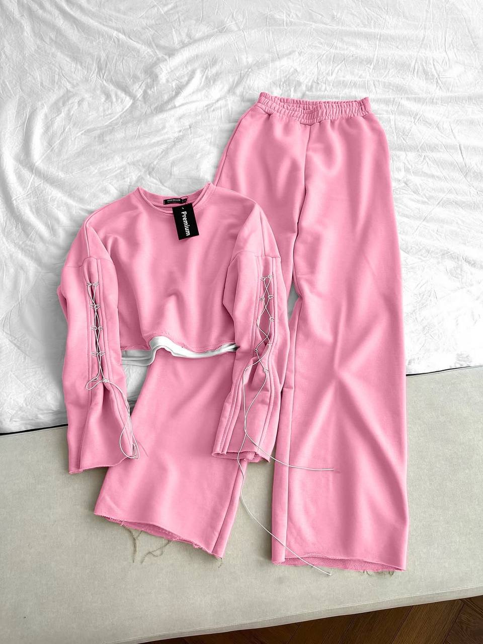 Костюм свободного кроя: кофта + штаны-палаццо высокая посадка(трехнитка) розовый