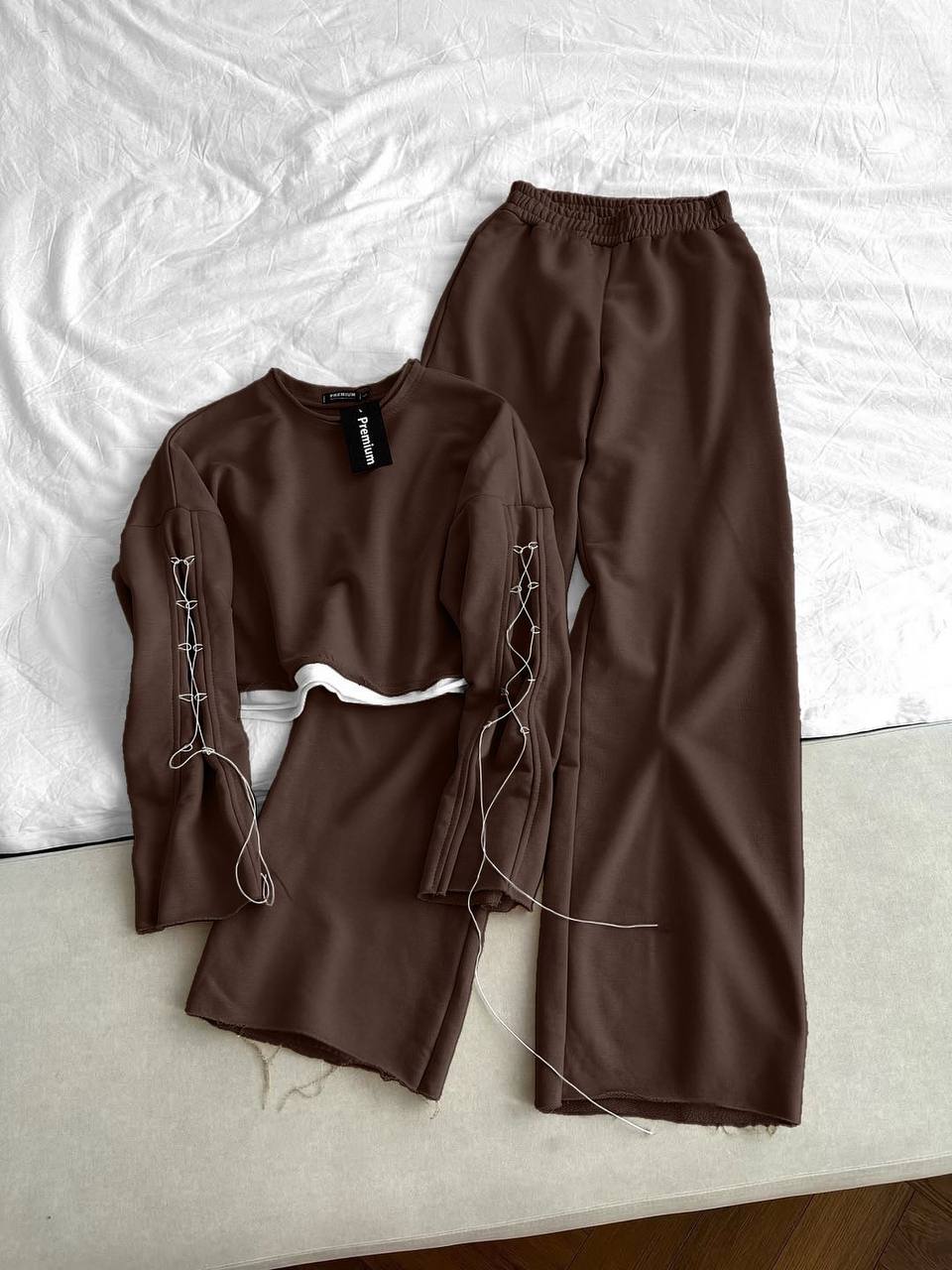 Костюм свободного кроя: кофта + штаны-палаццо высокая посадка(трехнитка) шоколад