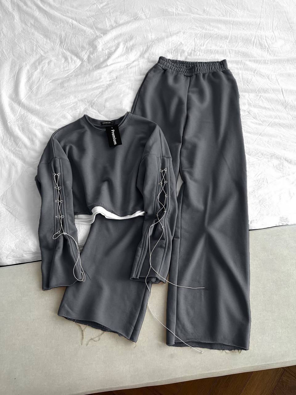 Костюм сочетающий стиль и комфорт: высокая посадка, свободный крой, современный дизайн.