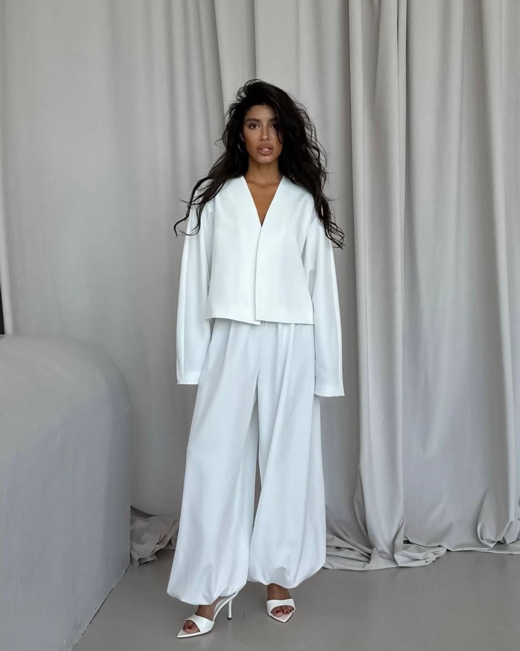 Костюм с укороченным пиджаком и широкими плечами не оставит тебя без внимания