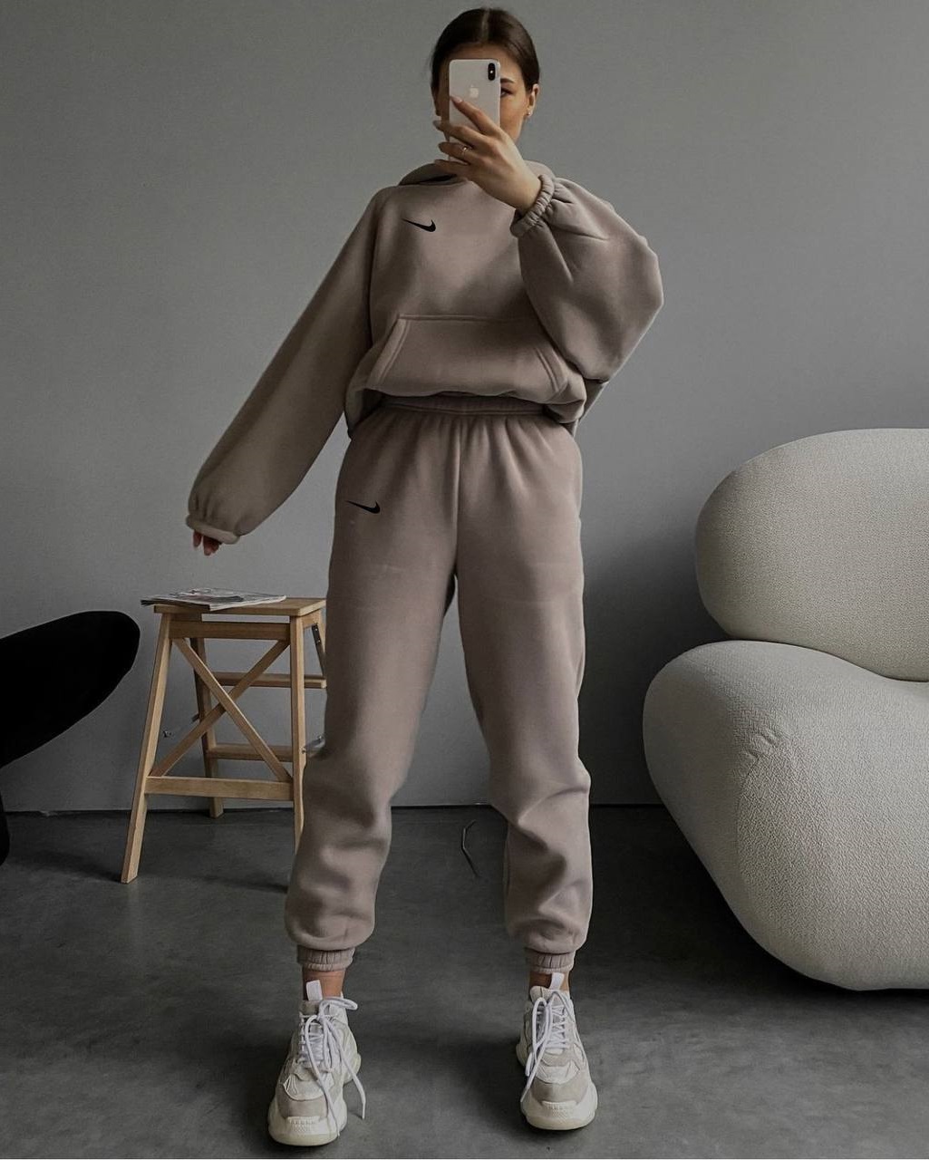 Удачное сочетание – свободные джоггеры с карманами и худи кенгуру на резинке,