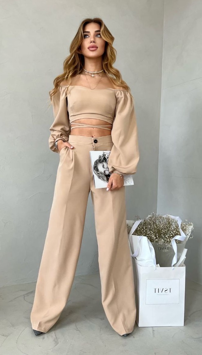 Будьте першим, хто залишив відгук “Костюм топ + брюки на высокой посадке бежевый”“