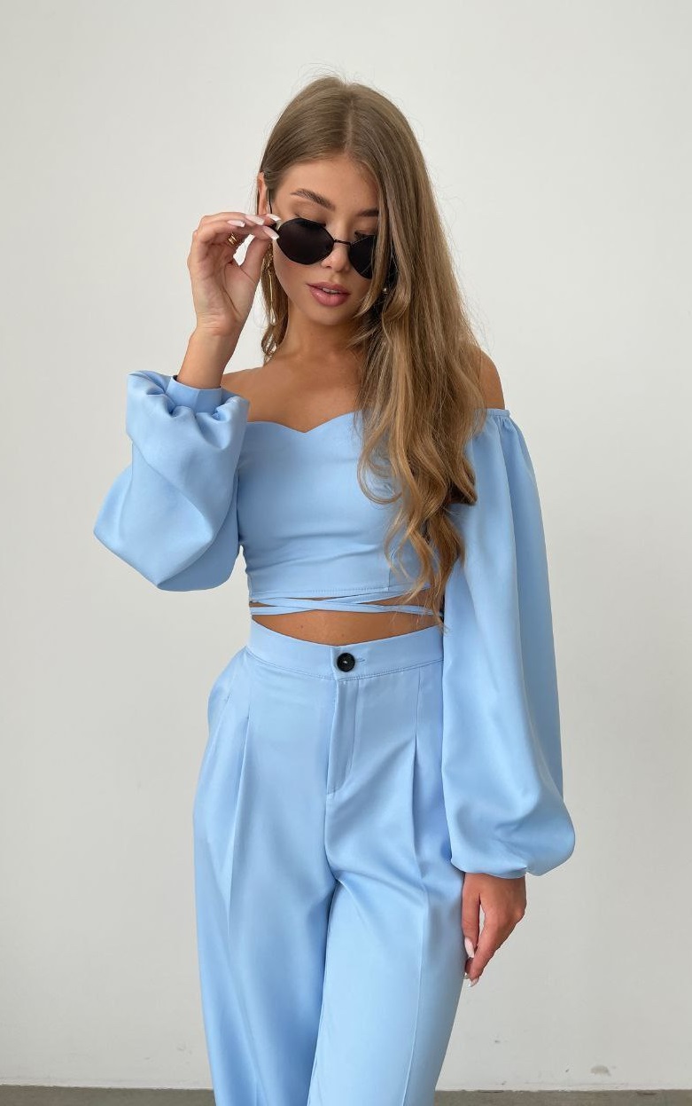 Топ сбоку застегивается на скрытую змейку, на рукавах сверху имеется резиночка, позволяющая носить рукав как на плече, так и спускать ниже