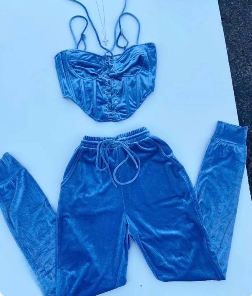 Идеальный костюм к весне и лету! Топ идет в виде корсета и регулируется завязками. Джогеры на резинке и имеют кармашки. Приятная мягкая ткань хорошо тянется.