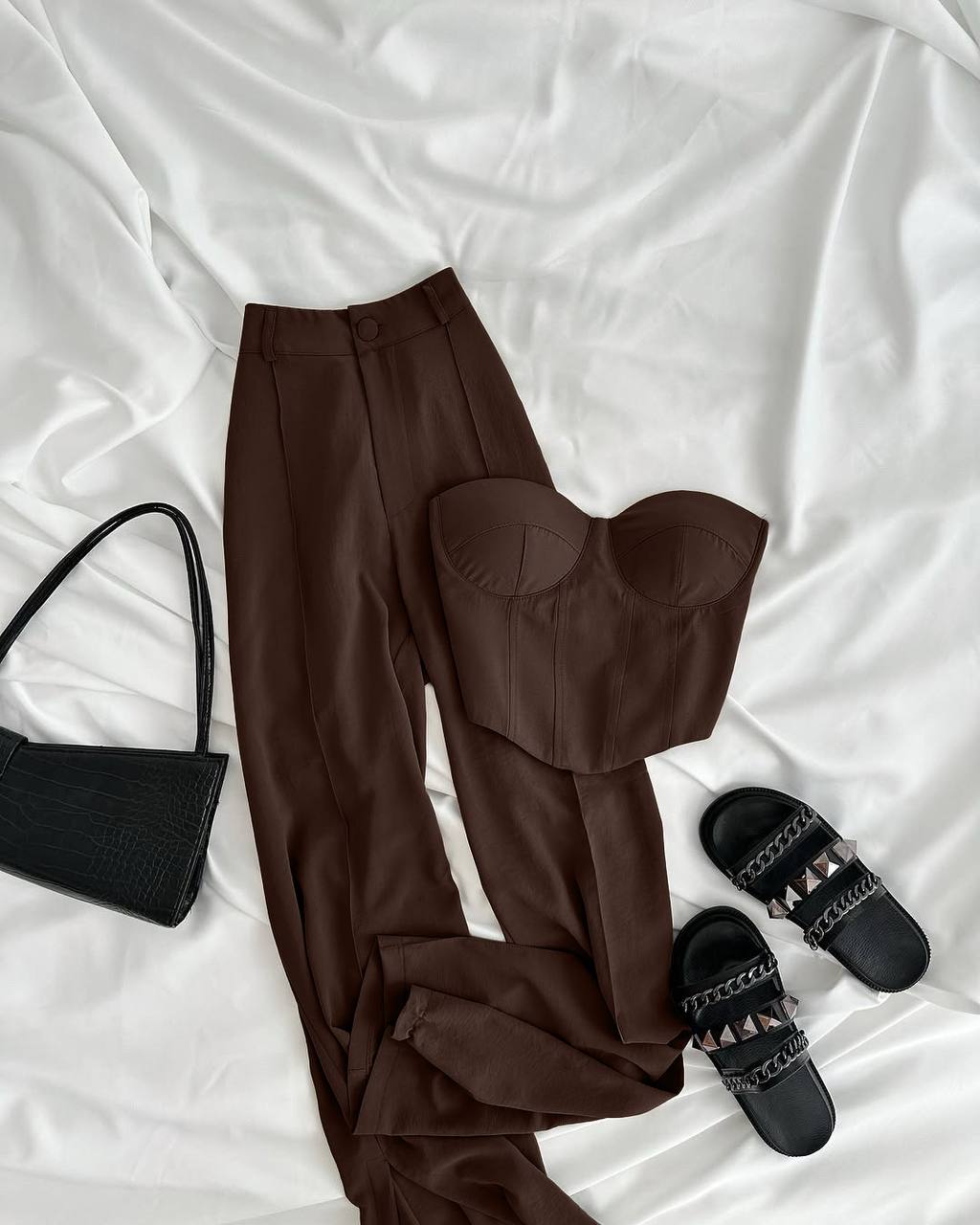 Костюм: топ/корсет с чашками + брюки палаццо шоколад