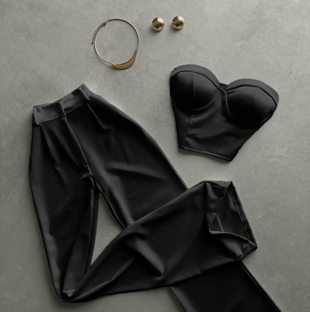 Костюм: топ/корсет з чашками на шнуровке+брюки палаццо черный