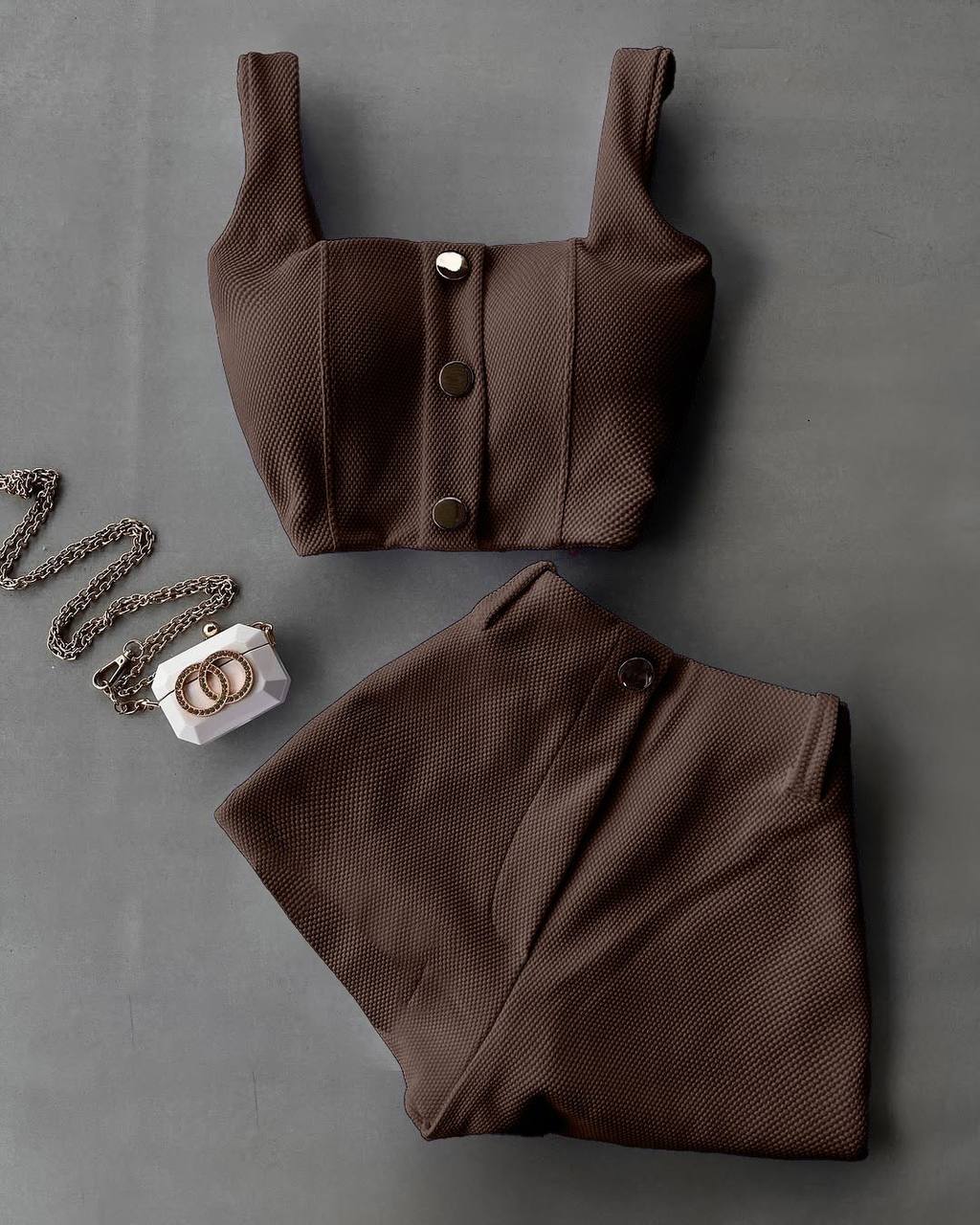 Будьте першим, хто залишив відгук “Костюм: топ с широкими бретелями+шорты шоколад”“