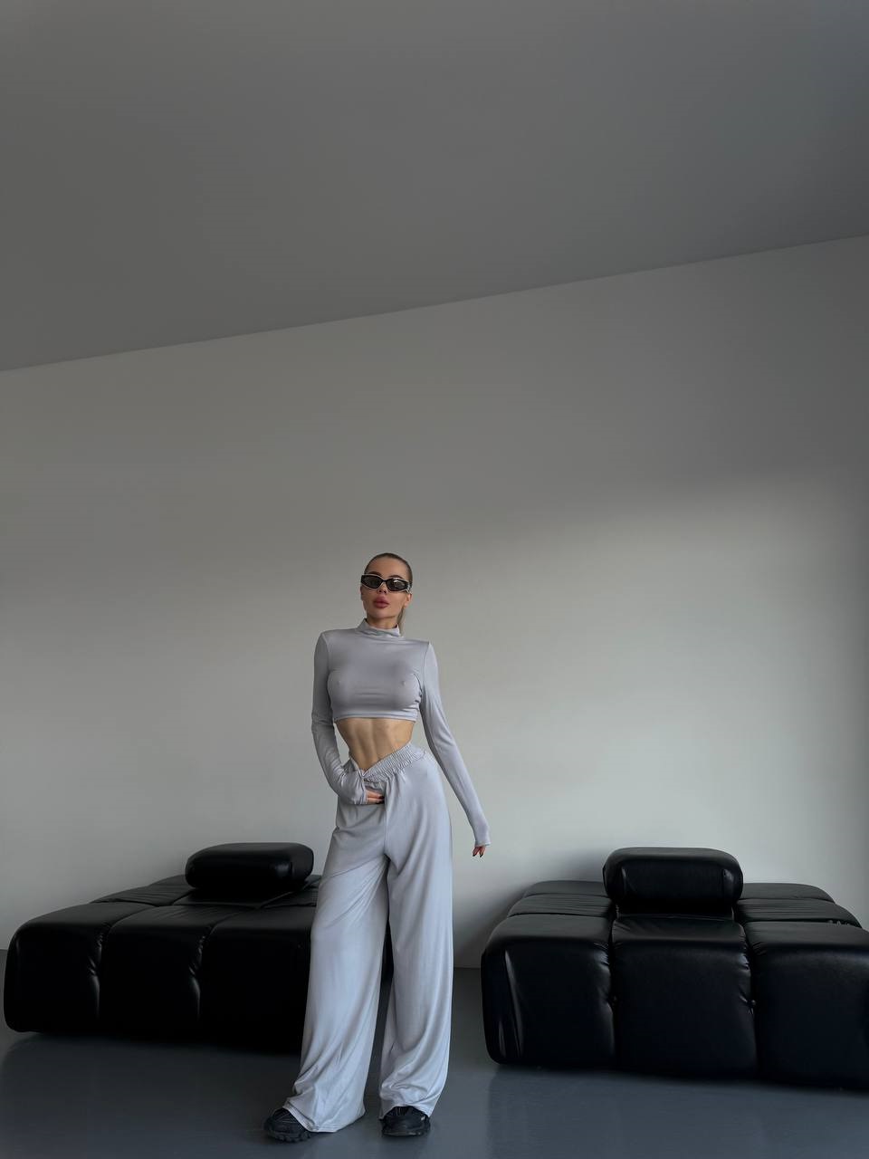 Костюм трикотажный (топ с длинными рукавами+свободными брюки) серый