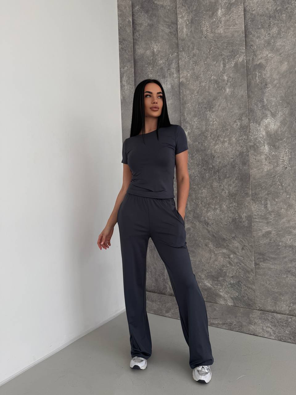 Костюм тройка: Футболка+Лонгслив с длинным рукавом+Брюки свободного кроя графит