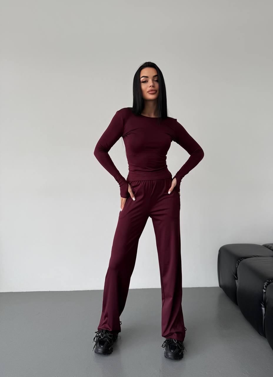Будьте першим, хто залишив відгук “Костюм тройка: Футболка+Лонгслив с длинным рукавом+Брюки свободного кроя бордо”“