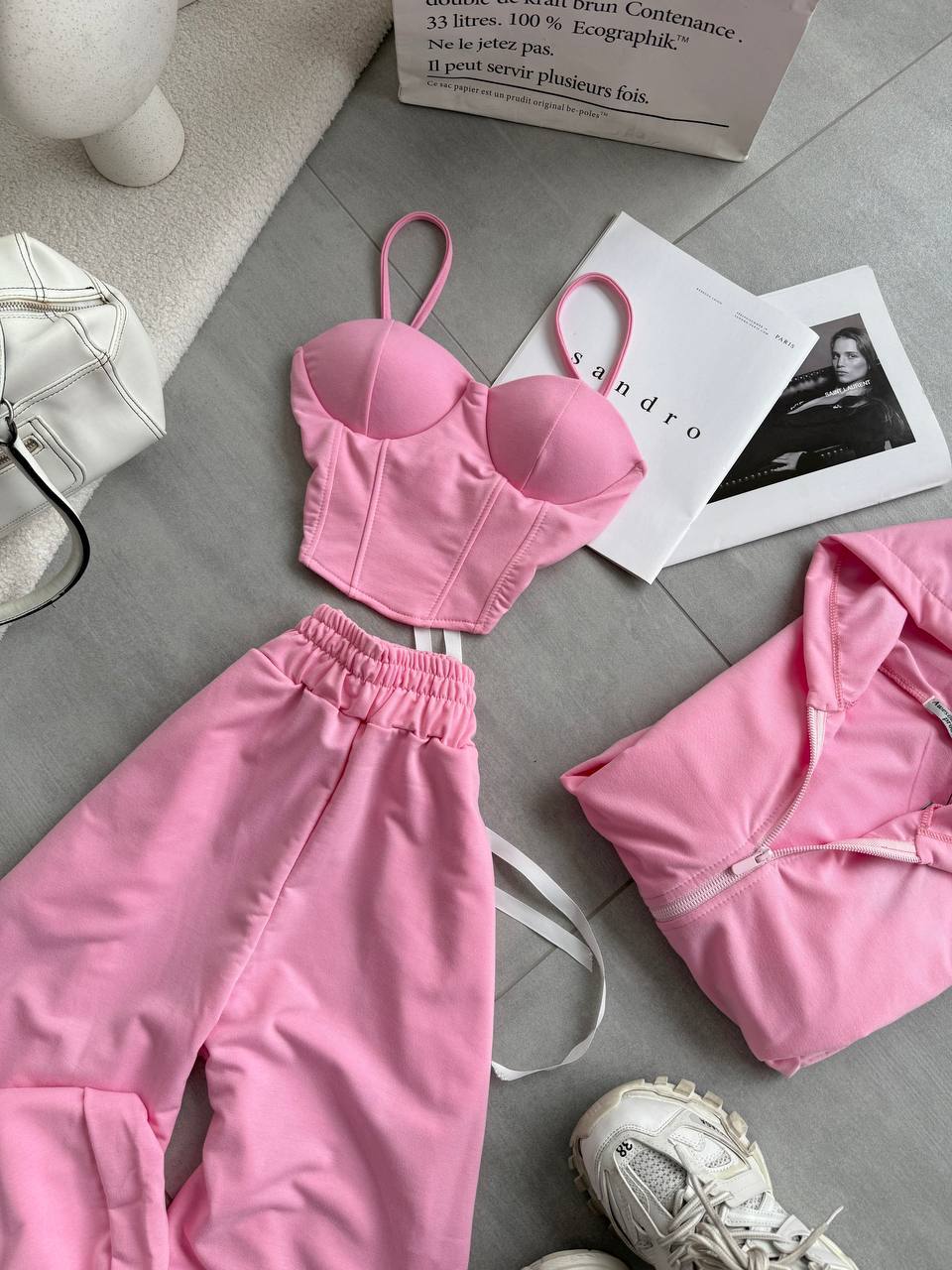 Костюм тройка: кофта + топ/корсет + джоггеры