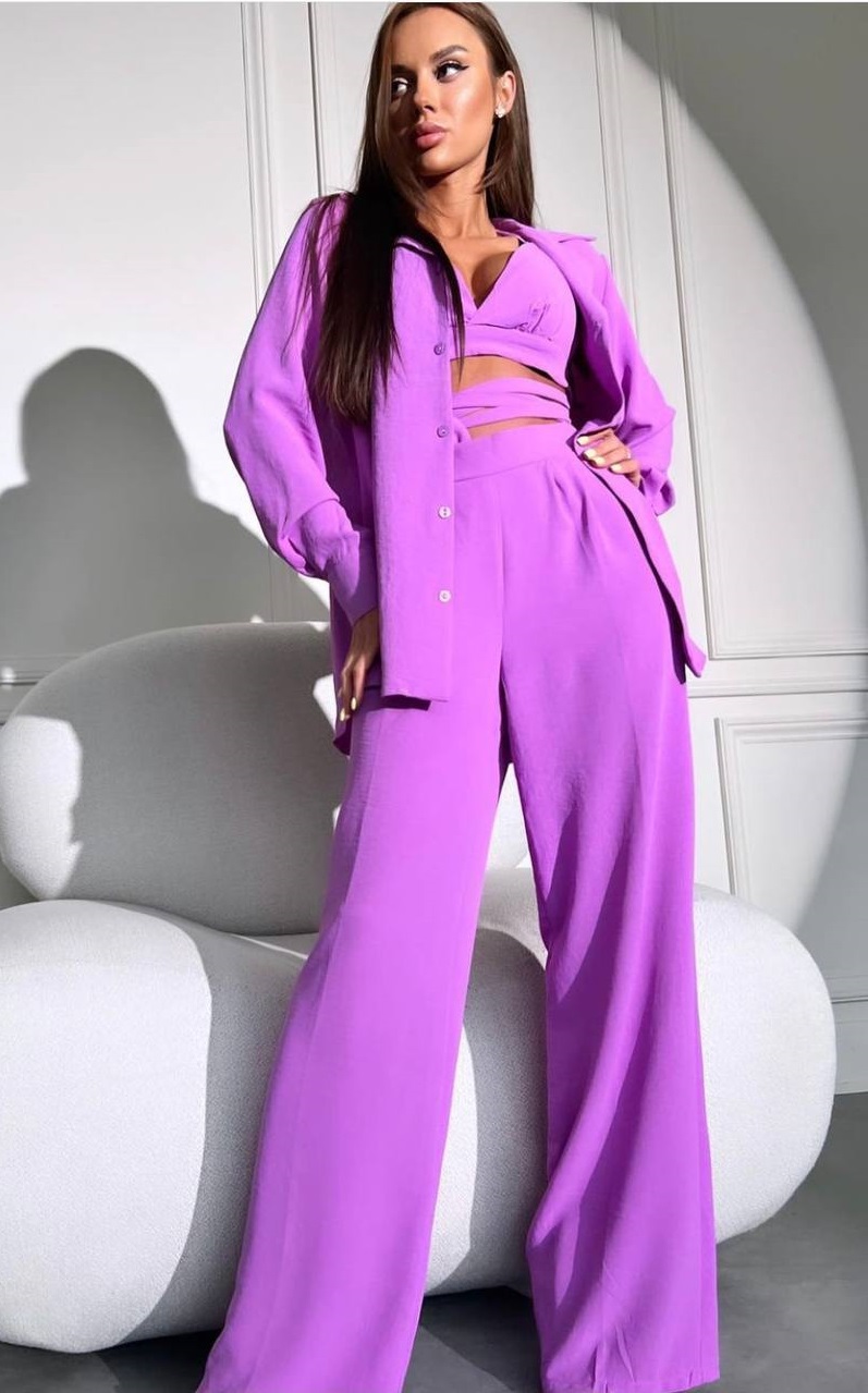 Будьте першим, хто залишив відгук “Костюм тройка оригинального кроя рубашка + топ + штаны лаванда”“