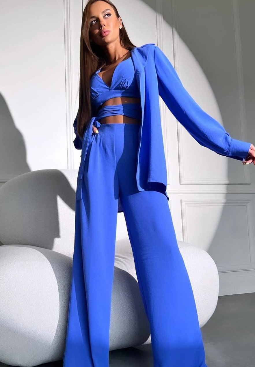 Будьте першим, хто залишив відгук “Костюм тройка оригинального кроя рубашка + топ + штаны синий”“