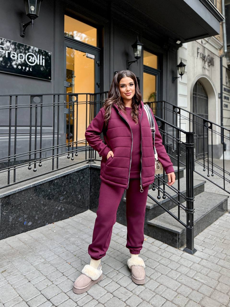 Костюм тройка теплый костюм+жилетка на подкладке с силиконом марсала